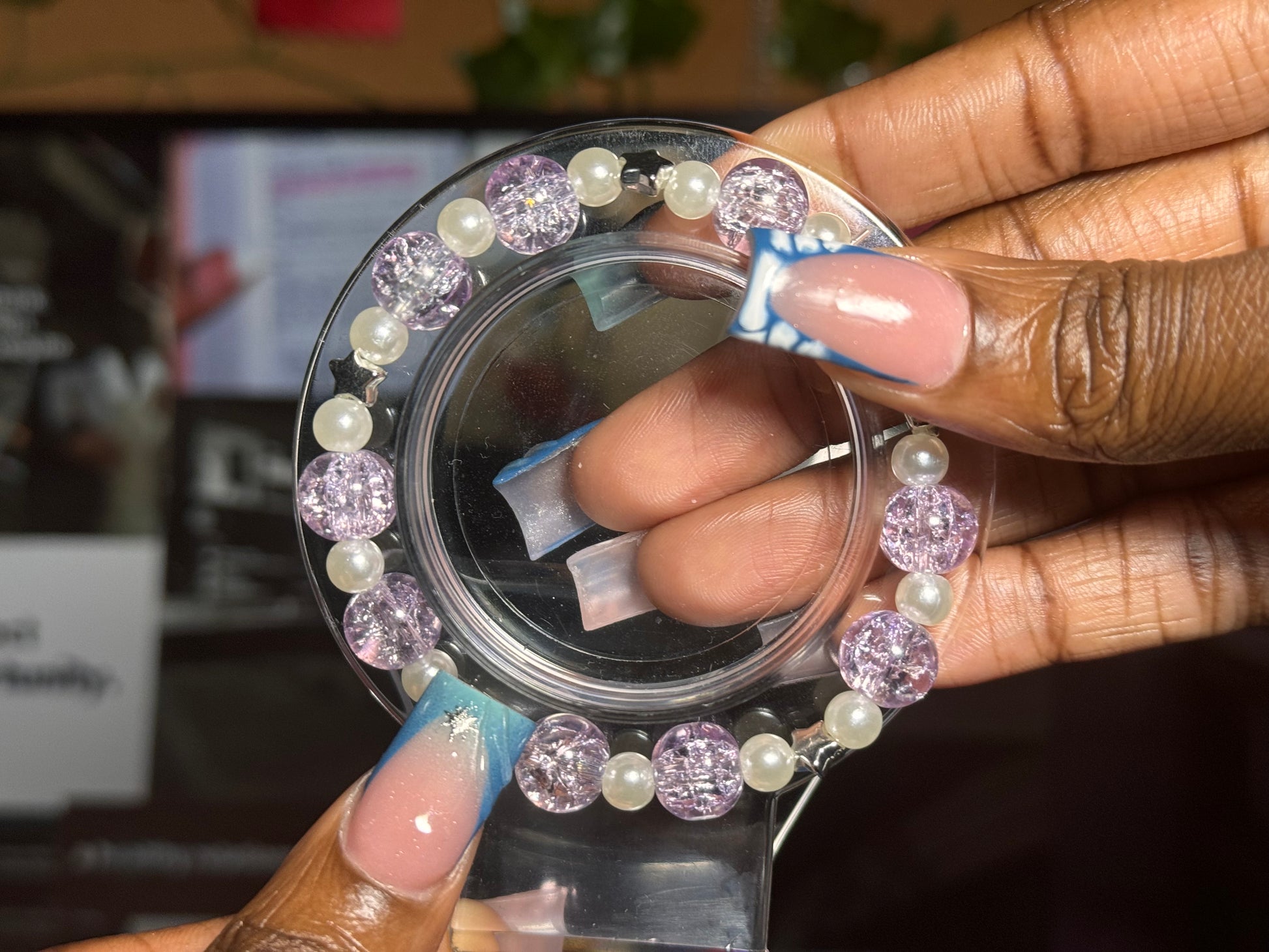 Purple Crackle & Pearl Bracelet (Silver)